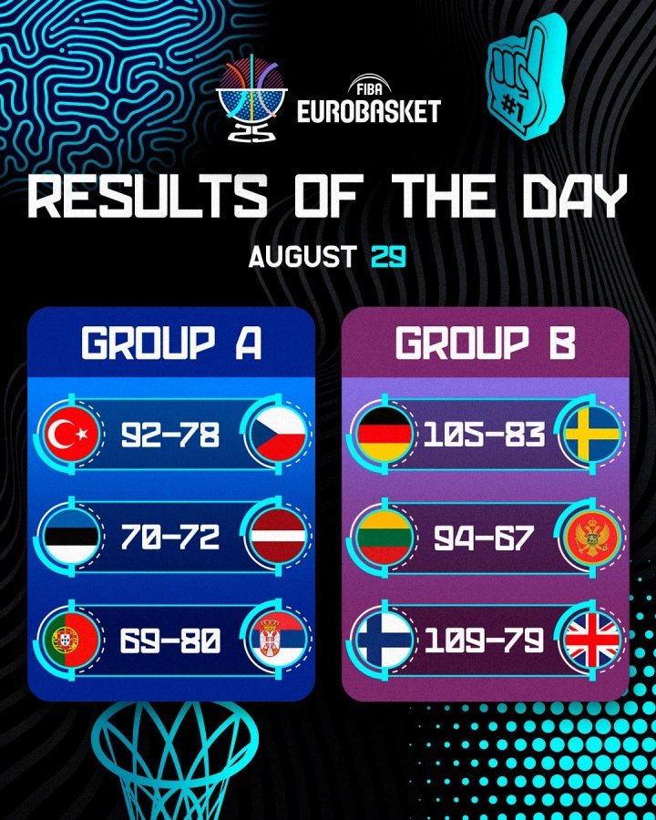 欧锦赛第3日赛果汇总:芬兰神将爆砍43分 申京准三双率土耳其连胜