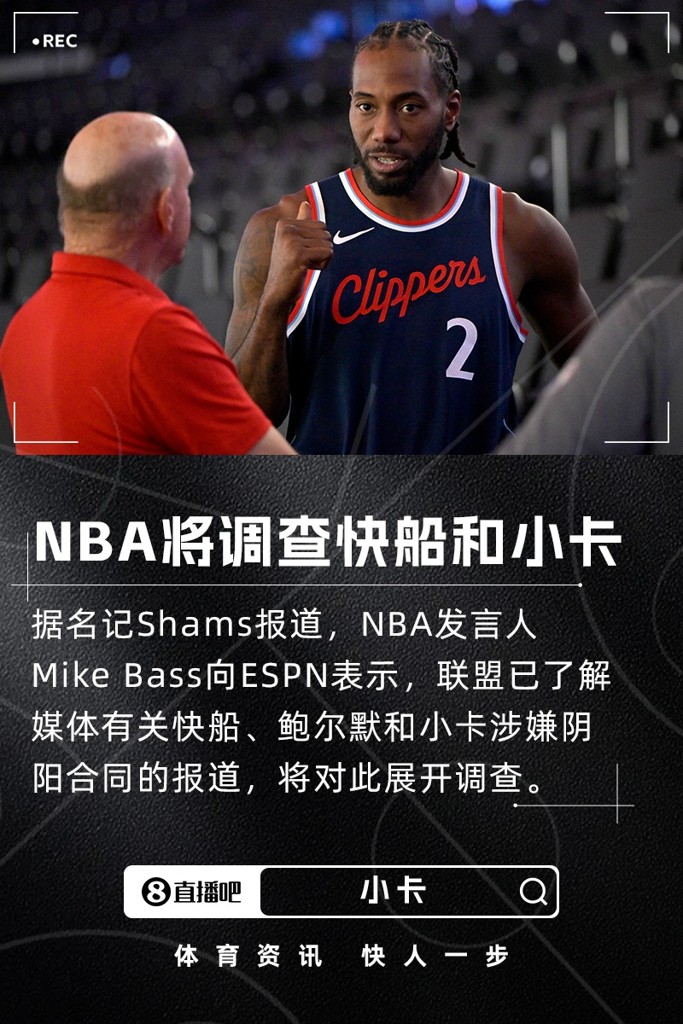 09月04日讯 据名记Shams报道,NBA发言人Mike Bass向ESPN表示,联盟已了解媒体有关快船涉嫌违规情况的报道,将对此展开调查。
