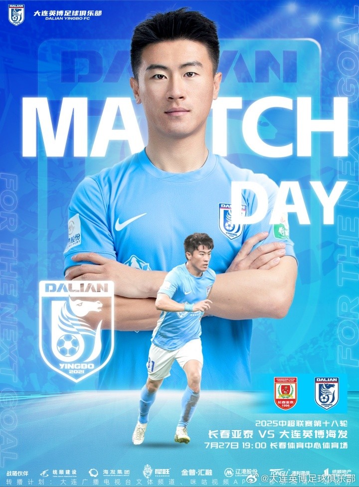 07月27日讯 北京时间今晚19点,中超第18轮,长春亚泰主场迎战大连英博,赛前双方公布首发阵容。