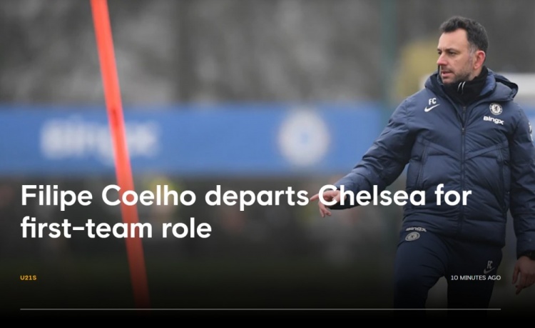7月29日讯 切尔西官宣U21主教练菲利佩-科埃略离队,后者加入斯特拉斯堡教练组,担任助理教练。